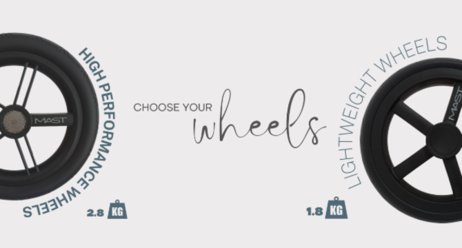 - PU Material: gre za kolesa iz poliuretana (PU), ki nudijo edinstvene lastnosti. Material nudi elastičnost gumijastih koles ter trdnost in vzdržljivost kovinskih koles. Popolna kombinacija za terenske površine. MAST High Performance Wheels so zasnovane predvsem za aktivne starše, ki gredo z vozičkom tudi na zahtevnejše terenske poti.
