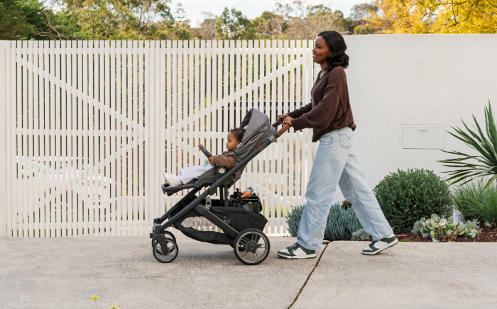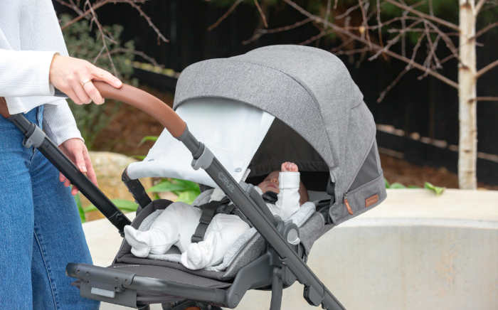 Košara in otroški avtosedež Mesa® se enostavno pritrdita na voziček Cruz V3. To omogoča hiter in enostaven prehod iz vožnje v sprehod z enim samim pritiskom na gumb, ob tem pa zagotavlja udobje in varnost.