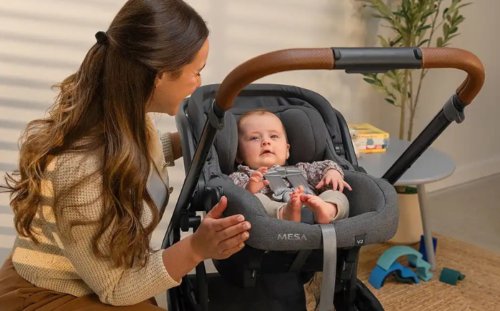 Košara in otroški avtosedež Mesa® se enostavno pritrdita na voziček Cruz V3. To omogoča hiter in enostaven prehod iz vožnje v sprehod z enim samim pritiskom na gumb, ob tem pa zagotavlja udobje in varnost.