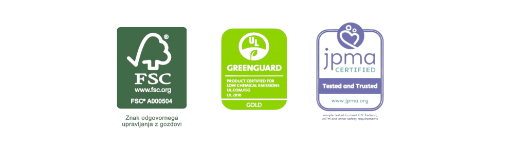 • GREENGUARD GOLD CERTIFIKAT - certifikat, ki dokazuje, da je UPPAbaby podjetje zavezano k odgovorni proizvodnji, varnim izdelkom in skrbi za čistejše okolje.
